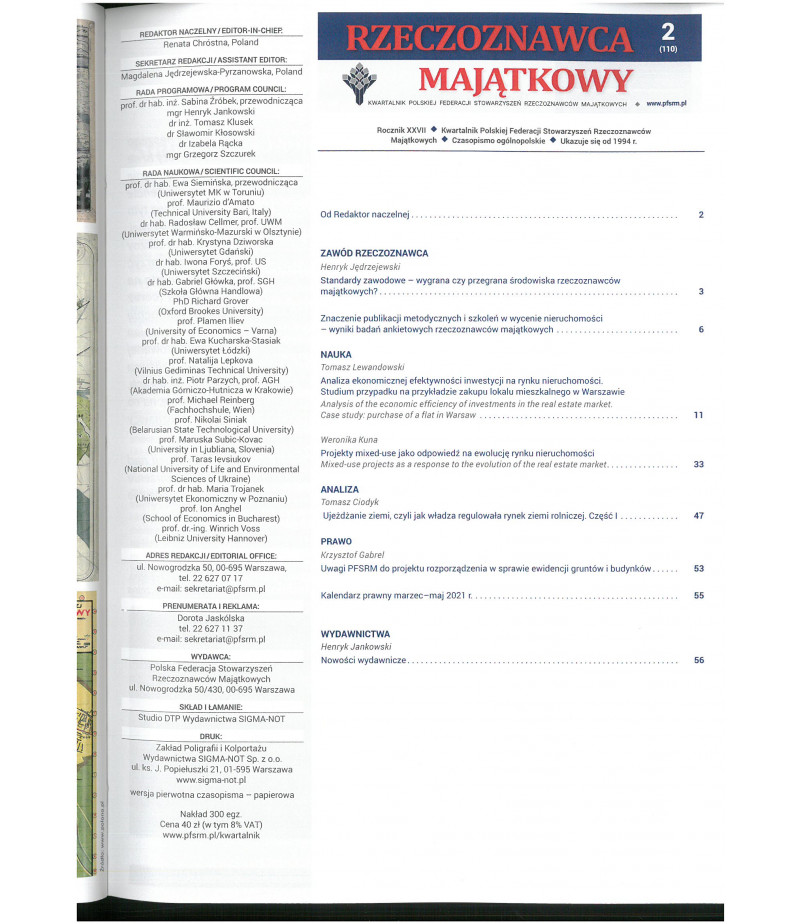 • Kwartalnik Rzeczoznawca Majątkowy nr 109 (nr 1/21)