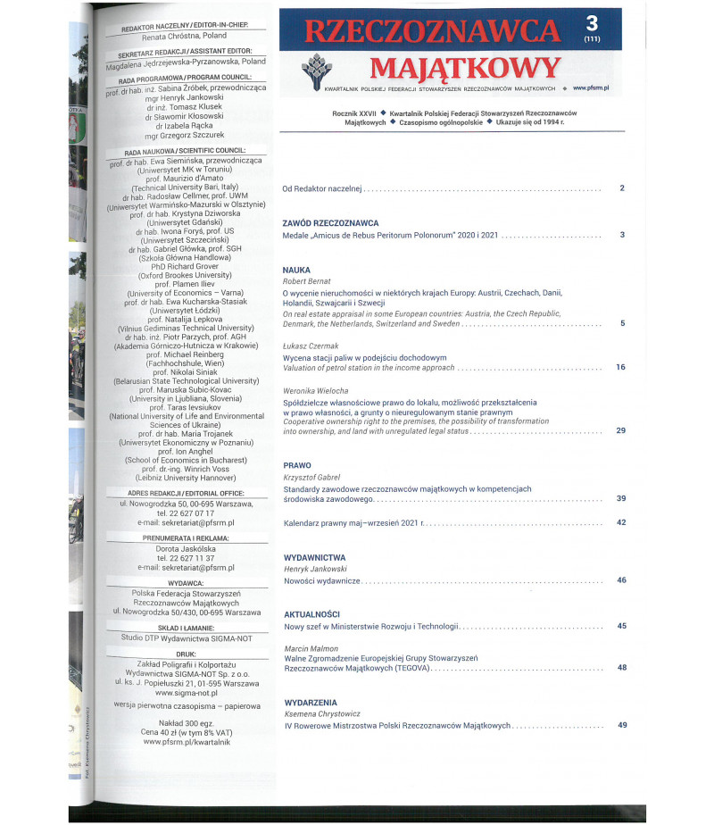 • Kwartalnik Rzeczoznawca Majątkowy nr 109 (nr 1/21)
