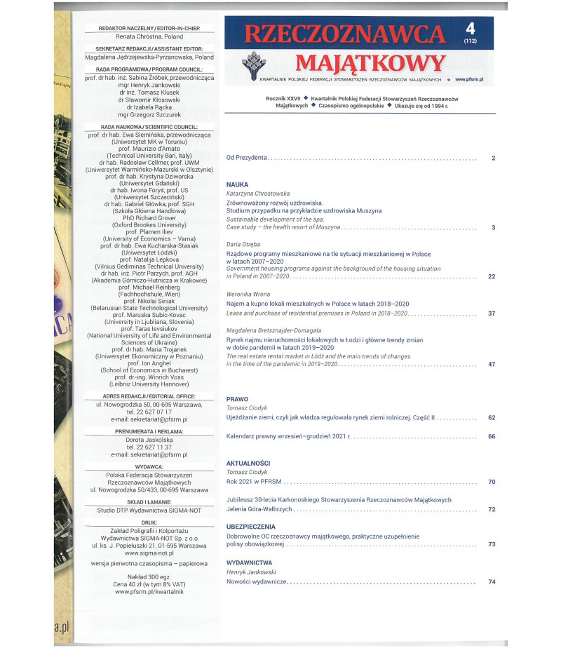 • Kwartalnik "Rzeczoznawca Majątkowy"nr 112